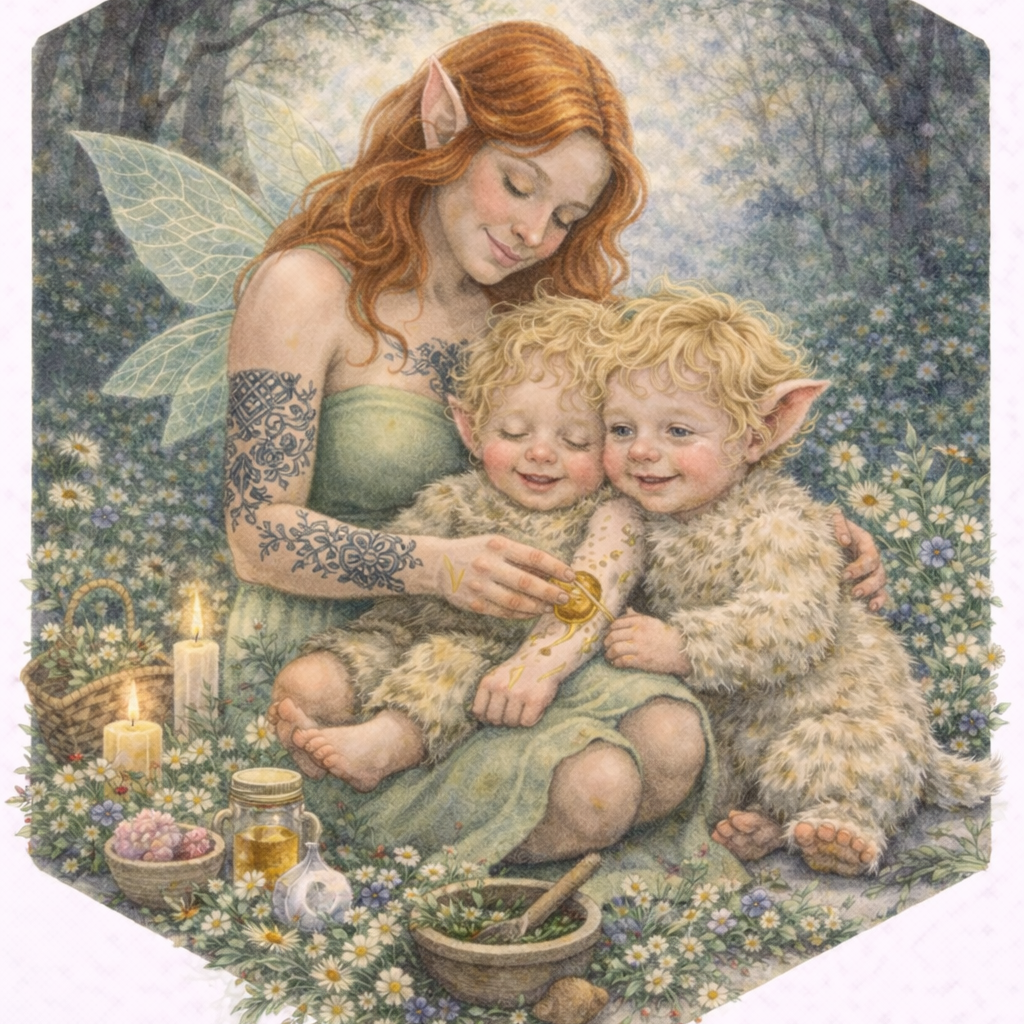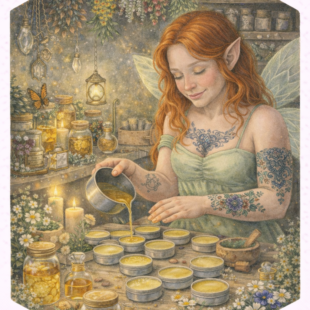 She called them mjölktrolls — her small, wild, wonderful creatures — and she made for them the way mothers have always made. Carefully. With honey and herbs and flowers pulled from the edges of forgotten paths. With beeswax and botanicals and the particular tenderness that lives in the space between a mother's hands and her child's skin.